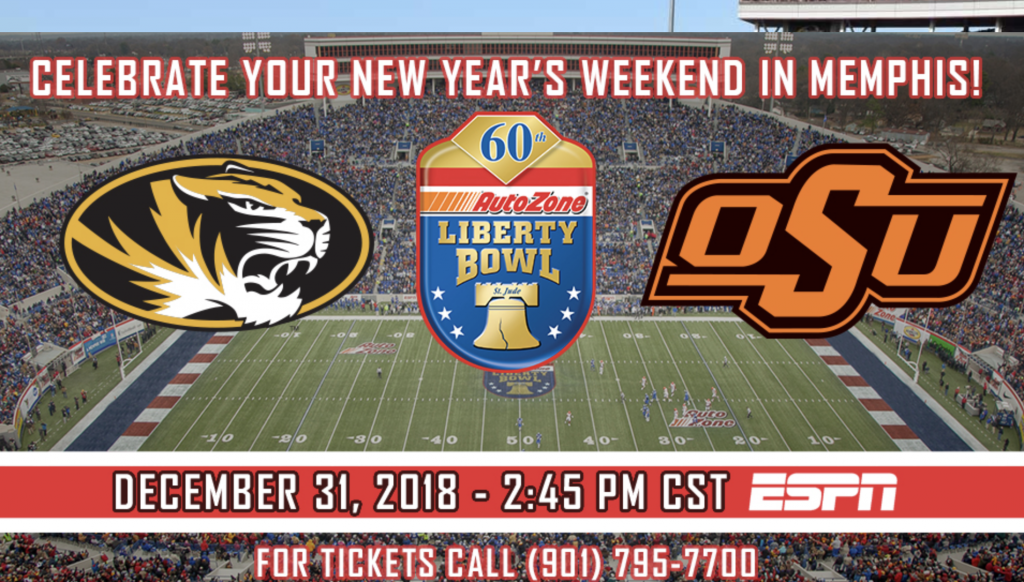 Mizzou fans will be celebrating the New Year a little early this December 31, thanks to the AutoZone Liberty Bowl. The Tigers earned an invitation to the Memphis classic along with Oklahoma State’s Cowboys, who will kick-0ff the celebration at 2 :45 CST, at Liberty Bowl Memorial Stadium in Memphis, Tennessee. A city that promises to spoil fans with southern hospitality, an excellent reason to plan on arriving early to explore Memphis. The jewel the Mid-South and the Home of the Blues and Rock n Roll.