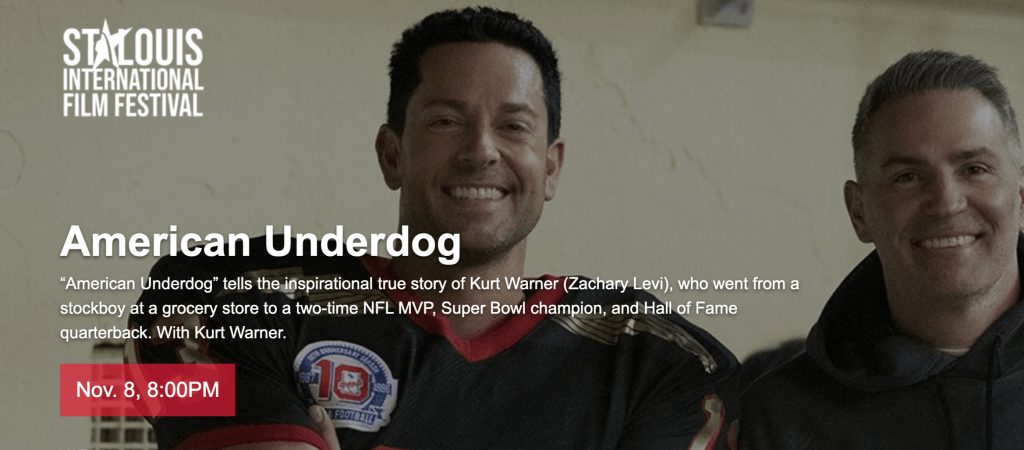 Cinema St. Louis (CSL) announced that the Centerpiece Event of the 30th Annual Whitaker St. Louis International Film Festival (SLIFF) — held Nov. 4-21, 2021 — is “American Underdog,” a Kingdom Story Company production distributed by global content leader Lionsgate (LGF.A, LGF.B) and opening in theaters December 25. Kurt and Brenda Warner, who served as executive producers on the film, will attend and participate in a post-screening Q&A.