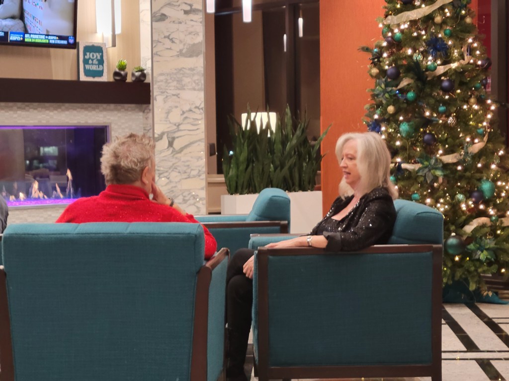 The staff was so friendly and helpful and suggested getting to the dining room at 5 to get a drink and then the food comes out at 5:30. There are windows all around and two fire places. The large Christmas tree adds to the holiday festivities and the view of the city out the windows lends an air of excitement.