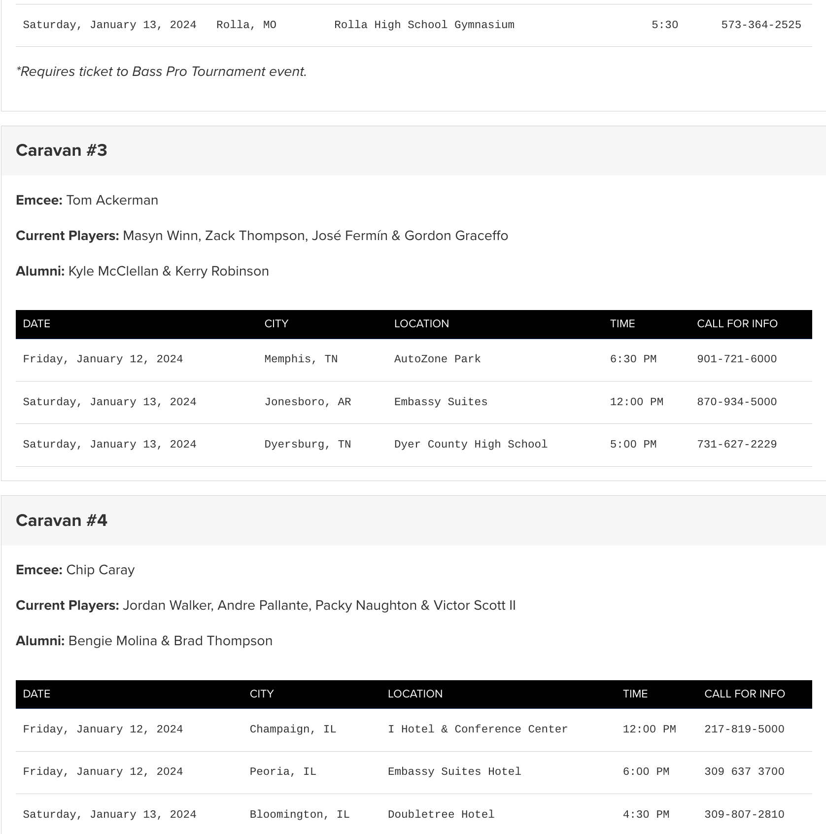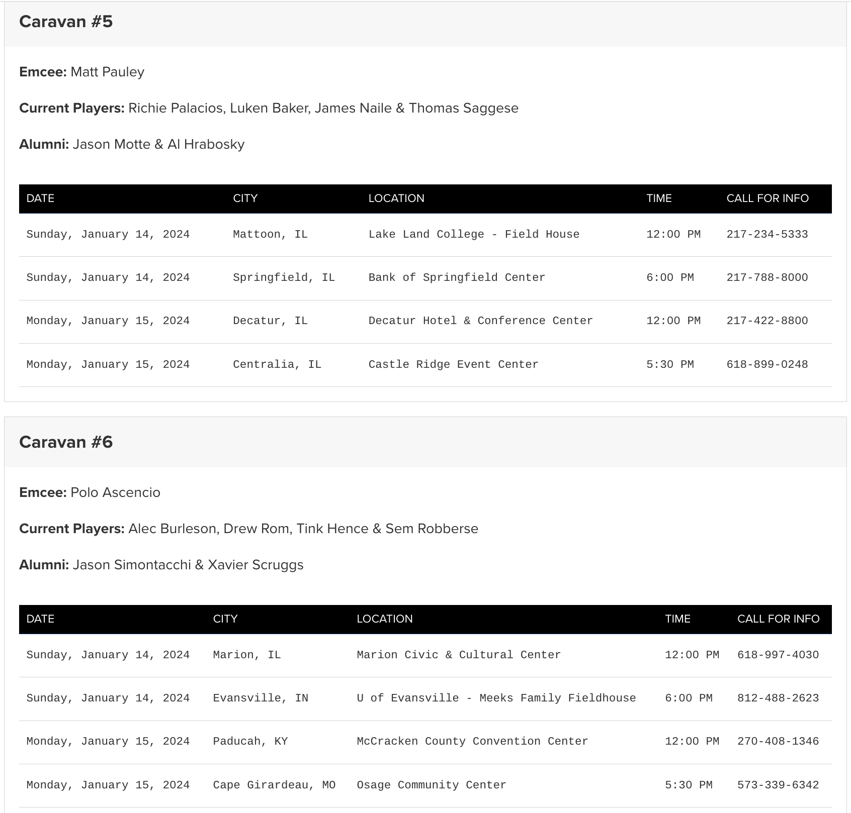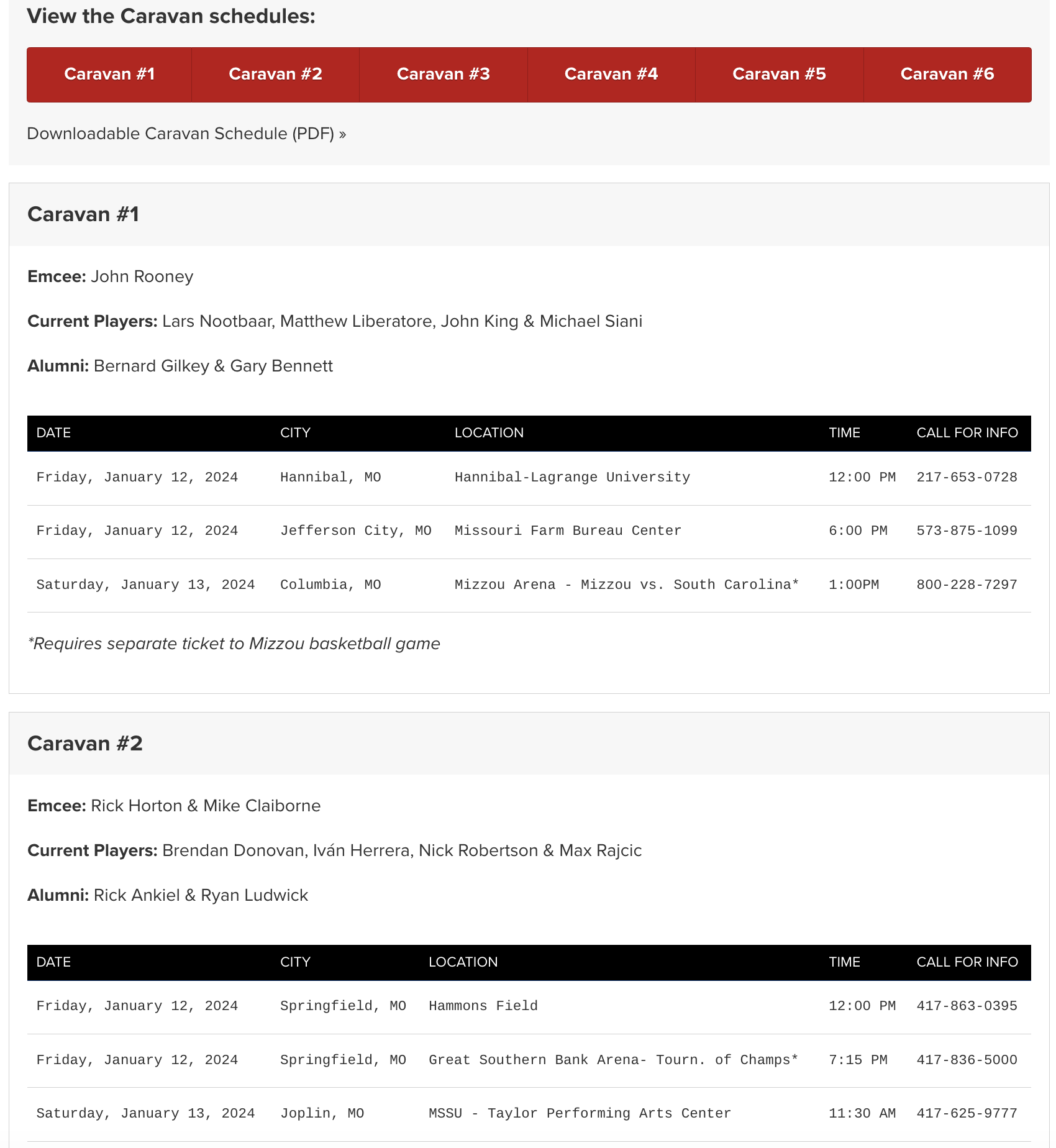 The 2024 Cardinals Caravan presented by Missouri Farm Bureau Insurance hits the road next weekend, visiting six states over four days. More than 30 current and former players will embark on the journey, making stops in 20 cities across Cardinals Nation from January 12-15.