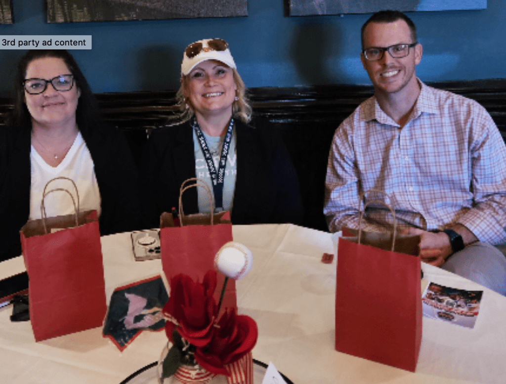 We appreciate our friends from Rawlings for coming. From left to right, Morgan Ripper; Lindsey Naber, Senior Director of Brand Marketing; and Eric Reinsfelder, Vice President, Brand & Sports Marketing at Rawlings Sporting Goods Company, Inc. Eric Reinsfelder talked about “The Rawlings Experience” an exciting venue coming to Westport Plaza.