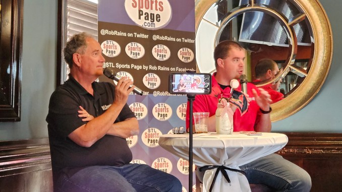 Rob Rains and Mike Rains were talking Cardinals baseball with fans at Helen Fitzgerald’s Restaurant at a luncheon before the first Cardinas game of the 2024 season. It was all part of our STL Sports Page “Team” Activities.