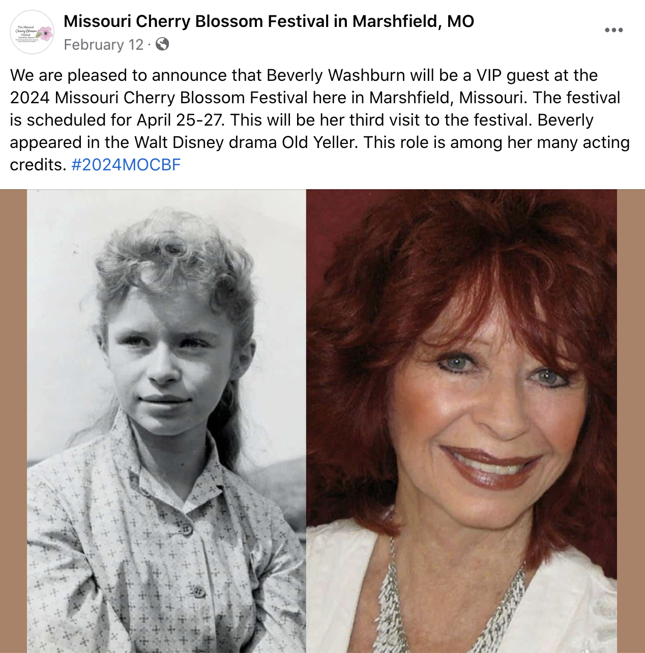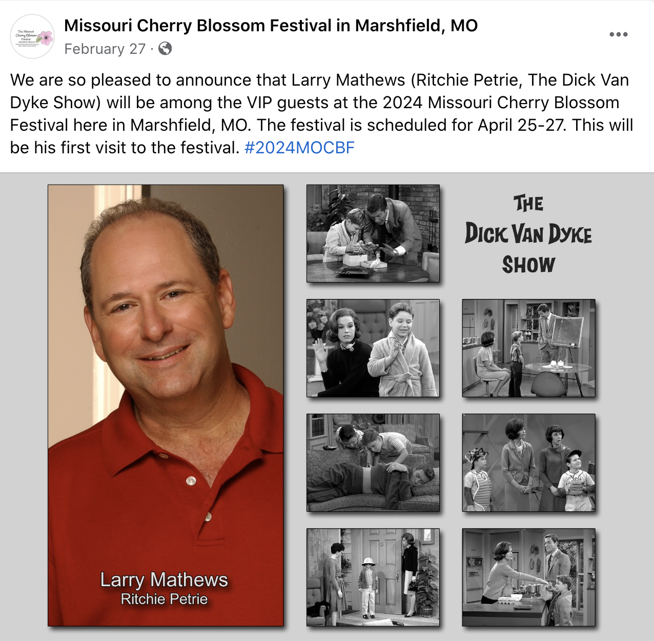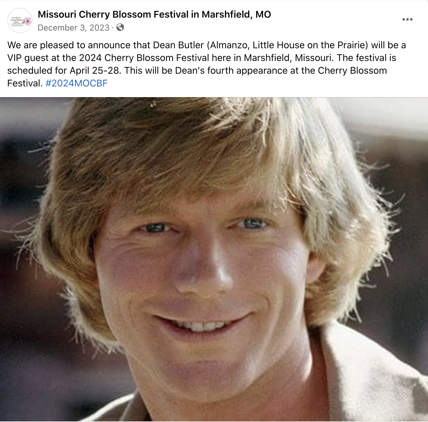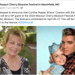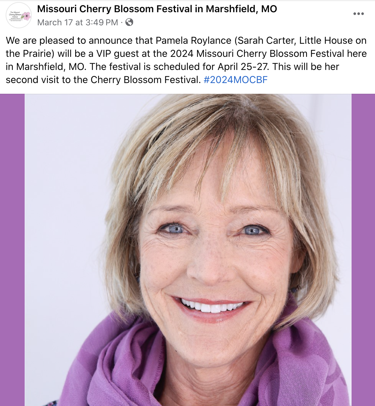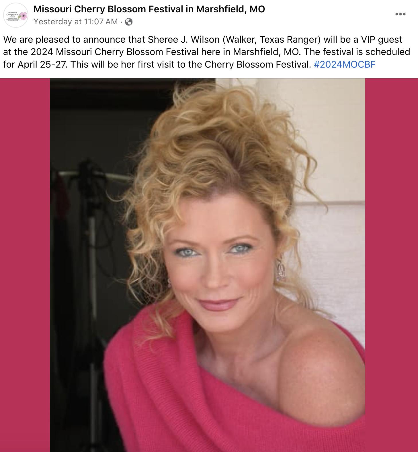 TV and Movie Star Who will be at the Missouri Cherry Blossom Festival