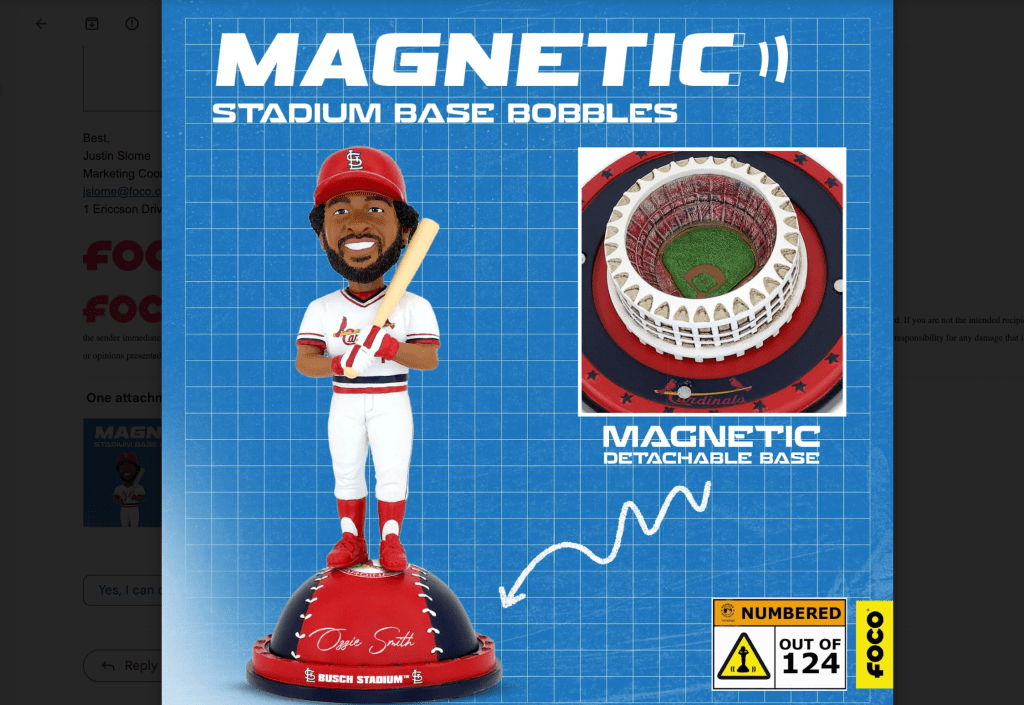 Foco has just announced an Ozzie Smith St. Louis Cardinals Magnetic Stadium Base Bobblehead. It will be a limited edition and collectors will be interested in knowing about it.