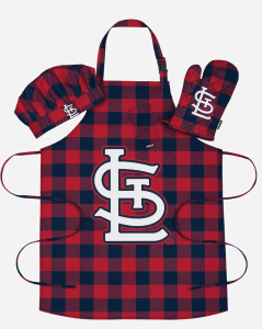 FOCO has just released their Officially Licensed St. Louis Cardinals Plaid Apron Sets. The Cardinals set comes with the team themed aprons, chef hat, and chef mitts. The Cardinals Bold Team Logo is displayed on each item included in case there were any doubts where your allegiances lie and will have you looking like the top chef at the St. Louis Cardinals regular season cookout party.