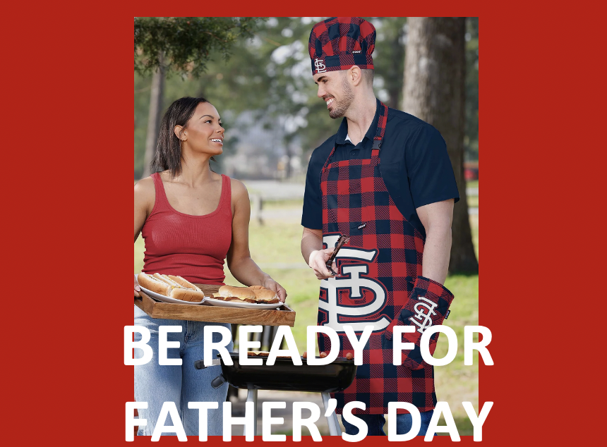 Father’s Day is Sunday June 16 and that’s less than a month away. One universal gift that most dads like is barbecue. They like eating it and they like doing it. The other thing dads like is watching Cardinals baseball. This year you can treat your dad to a special day with all his favorites: watching the Cardinals vs. Cubs game, eating delicious barbecue and give him his own St. Louis Cardinals themed barbecue tools and gear.