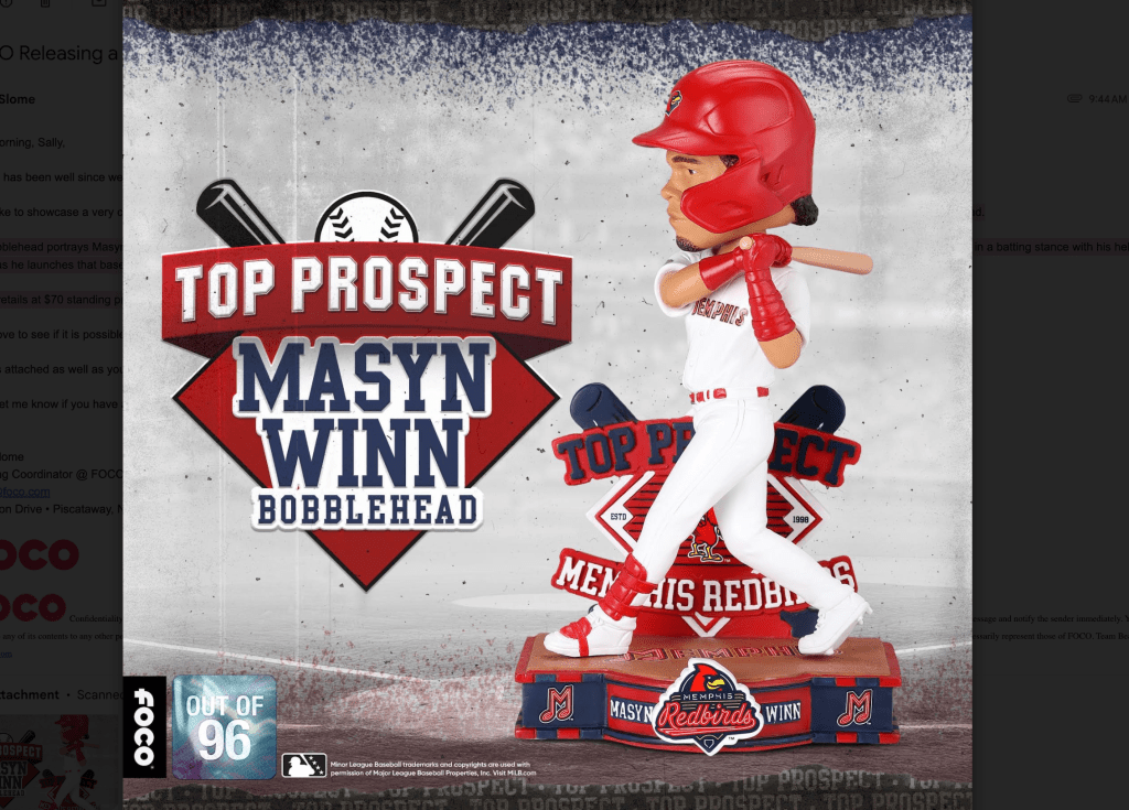 Masyn Winn Memphis Redbirds 2024 Minor League Top Prospect Bobblehead.