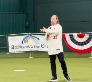 Former MLB pitcher Matt Whiteside and his wife Bashcha, who own All-Star Performance Batting Cage Center have been partnering with Rainbows for Kids for several years and they provide their indoor baseball facility for the All-Star Game. This year they provided professional baseball instructors who served as coaches for the practices. Whiteside has two teams, the Gamers and one of them, the Gamers 14U came out and worked with the kids.