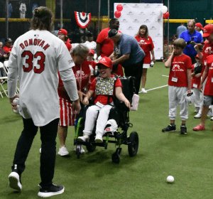 This year the Cardinals pitched in by donating a Rawlings youth glove to each child and Brendan Donovan along with Alec Burleson came out to play with the kids. Chip Caray also donated his time, serving as the “play-by-play” man for the event.