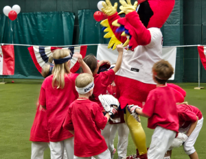 Fredbird has been a big part of Rainbows for Kids ever since their first party at Cardinal Glennon Pediatric Medical Center 24 years ago. Cardinals employees Tim Faulkner and Justin Sprengel have been longtime supporters of Rainbows and they make sure Fredbird is there to bring smiles to the kids faces.