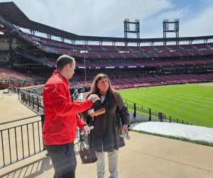 There are still tickets available but Carson Shipley, shown left talking to STL Sports Page’s Suzanne Corbett has a warning to fans.