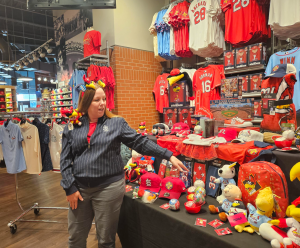 Inside the stadium, Stephanie Spargur and her team are setting out the new items in the team store.