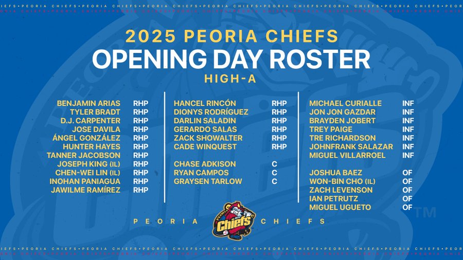 Peoria – In addition to Lin, the High A roster includes pitchers Darlin Saladin and Zack Showalter. Catcher Ryan Campos also was promoted after playing in Palm Beach following last year’s draft. Outfielder Won-bin Cho returns to Peoria but will begin the year on the IL.