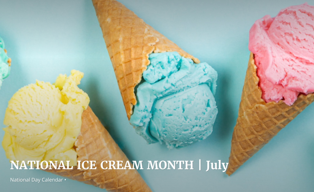 July is National Ice Cream Month accordign to the National Days Calendar.