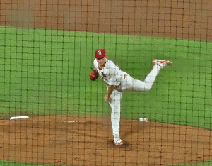 Davis is in his first season with the Cardinals organization after being drafted in the 5th round last year out of Oklahoma. e looks like he has a promising future. We got to see him pitch three hit-less innings but his outing was interrupted by a brief rainstorm so they ended up taking him out after the rain.