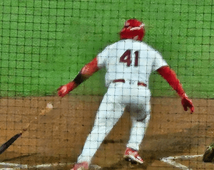 While we were in Palm Beach Rob Rains was working on a story on catcher Rainiel Rodriguez, #41 in the photo, right, who was promoted to the level despite being only 18 years old. That story will be posted within the next few days.