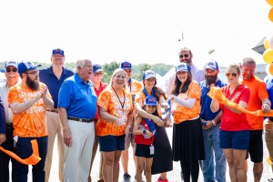 The photo, left shows Rabbi Chaim and Bassy Landa, directors of the Chabad Jewish Center of St. Charles County kicking off the fourth annual St. Charles Jewish Festival with a ribbon cutting flanked by public officials and community leaders. (Credit: Chabad Jewish Center of St. Charles County)
