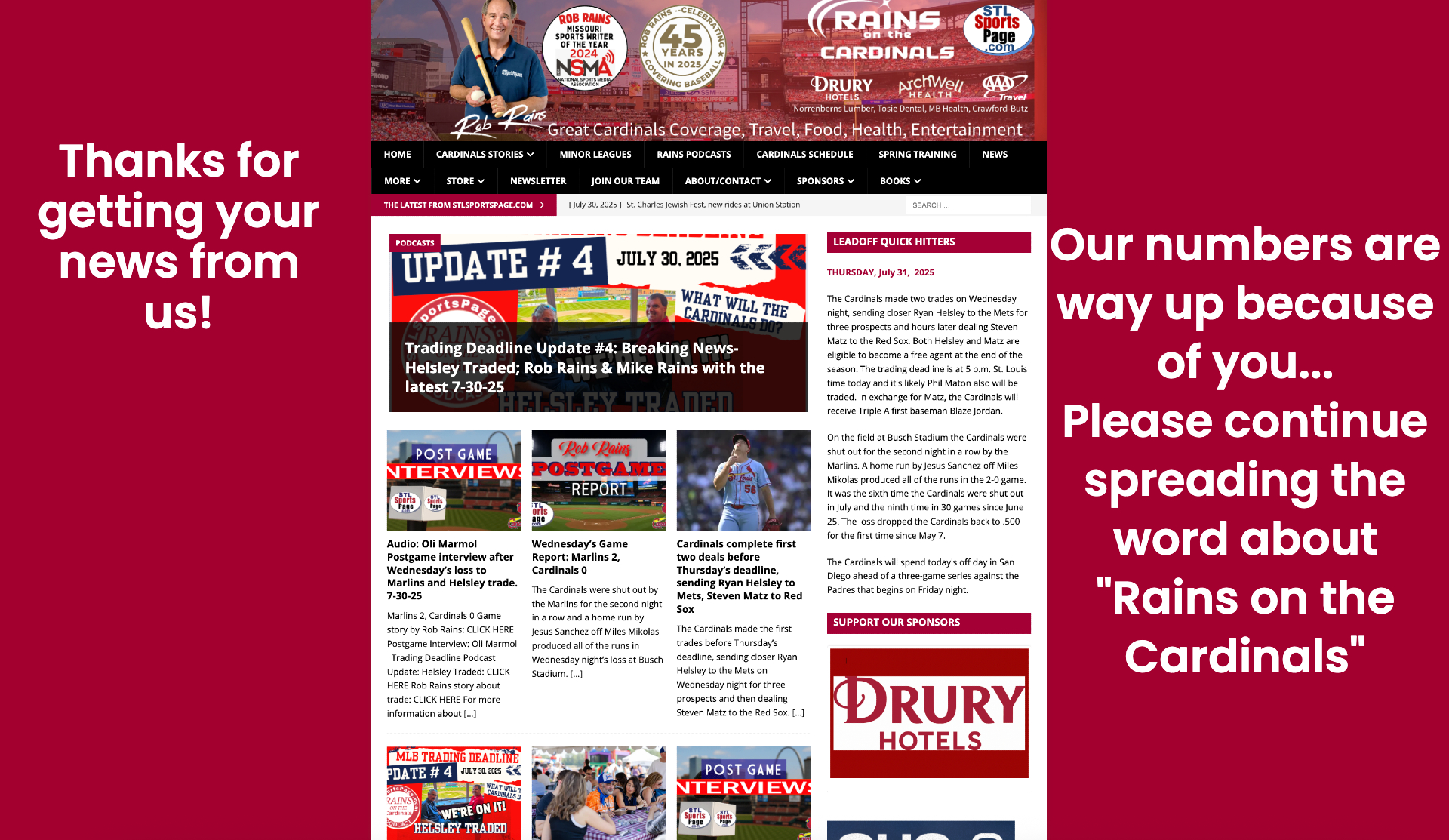 Here is the latest “Rains on the Csrdinals Trading Deadline Update” Po9dcast: