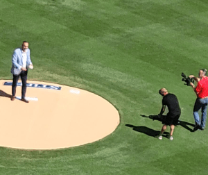 He was on the field with his family and fans showed their appreciation. He then took the mound and threw out the first pitch.