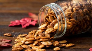 *Besides a great snack for Halloween and beyond, these are great sprinkled in salads or used as a garnish on steamed veggies as green beans of broccoli, and on cream-based soups as squash or potato bisques.