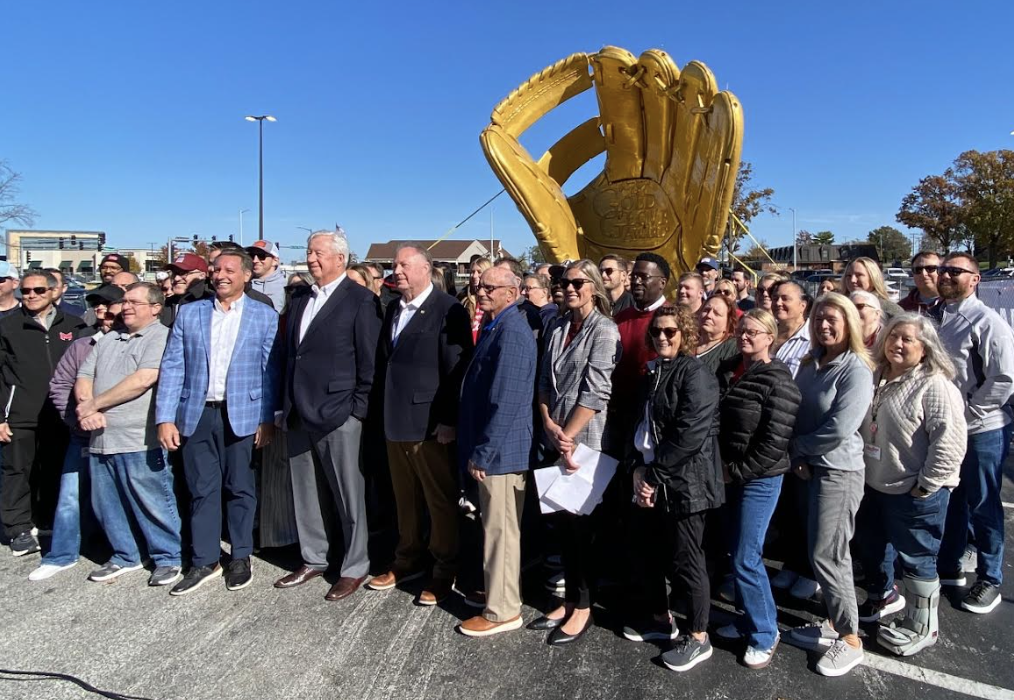 The company’s goal to create a stronger presence and footprint in its hometown came to fruition when Rawlings moved its corporate headquarters and opened the Rawlings Experience in Westport Plaza in 2024, but they had more to come and some of that was accomplished this week as the Rawlings team showed off their giant glove, which will soon adorn the top of their building.