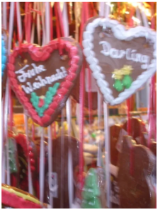 These are German Honey Cakes, known as Lebkuchen, found in the markets in Germany. These are so old they are from the 13th century with roots in the European monasteries. It is believed they were made by German Monks at that time. They are a form of gingerbread-type cookies with nuts, spices and molasses.