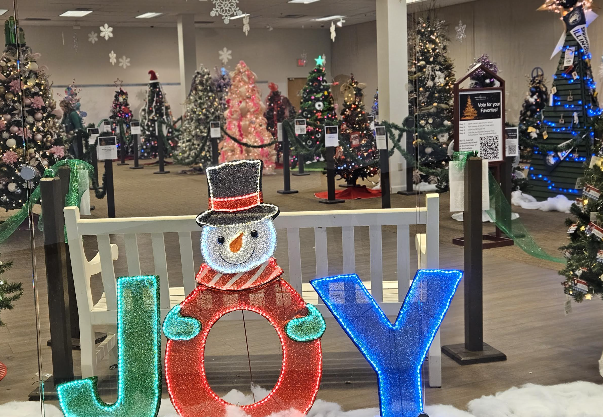 The tree display was in an empty store near where Santa was. Each tree was lit and they were all different. It was really fun to walk the aisles of the Christmas tree festival and look at each one.