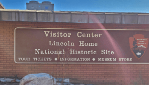 Upon arriving to town we headed to the Lincoln Home Historic Site to get tickets for the tour. The tickets are free but you have to go to the facility to reserve your tickets the day of the tour. There was a beautiful Christmas tree in the lobby of the Lincoln Home Historic Site Visitor’s Center which is run by the National Parks. The tree is at the top of the page. We enjoy collecting ornaments from places we have been so we got one in their gift shop.