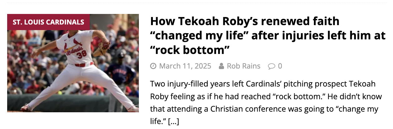 Every morning during spring training, pitching prospect Tekoah Roby carried a big stack of books to a table outside of the clubhouse. In our story on March 11, Roby talked about the significance of those books, and the change they marked in his life. The story detailed how Roby’s re-found faith helped him deal with numerous injuries. Unfortunately, another injury requiring Tommy John surgery loomed in his future, likely forcing him to miss the 2026 season. CLICK HERE to read it.