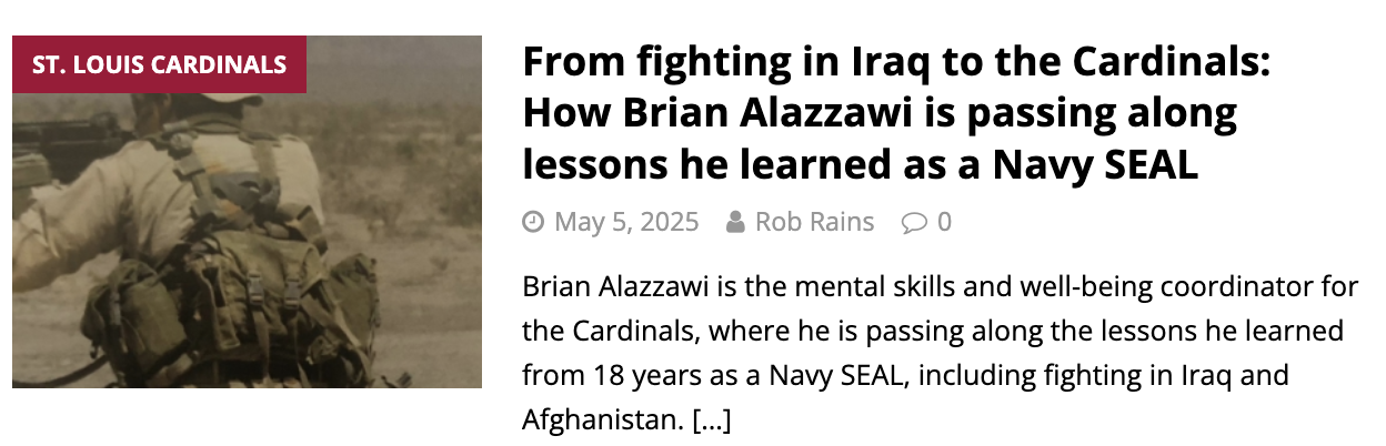 One of the people who helped Leahy through his tough times was Brian Alazzawi, a mental skills coach in the organization. A former Navy SEAL, Alazzawi was the subject on a May 5 profile, which coincided with the release of a new movie, Warfare, in which he was one of the SEALs featured in the depiction of a fierce battle in Afghanistan. To read the story CLICK HERE