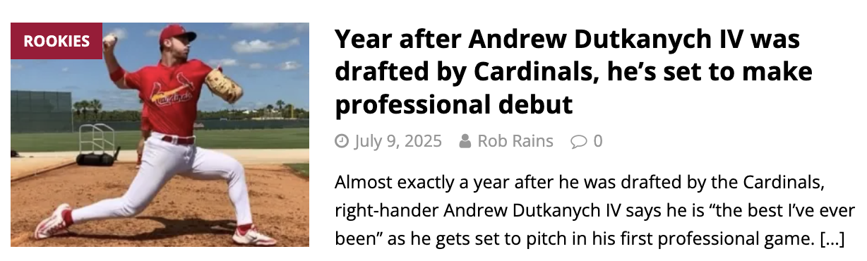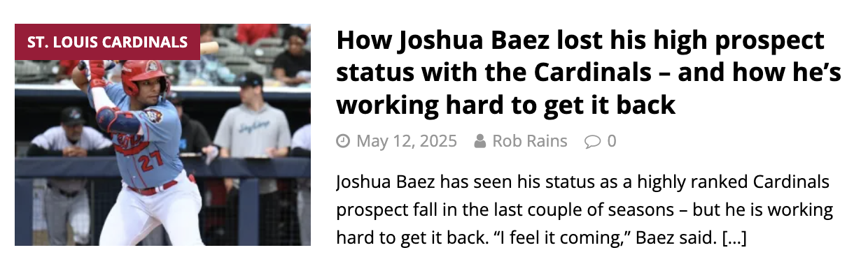 We spent a lot of time each season in the minor leagues, and many of the other 10 stories which join the profiles of Bloom and Wetherholt on our list of the favorite stories in 2025 were a result of some of those trips, including profiles of some of the Cardinals’ other top prospects and some human-interest stories.