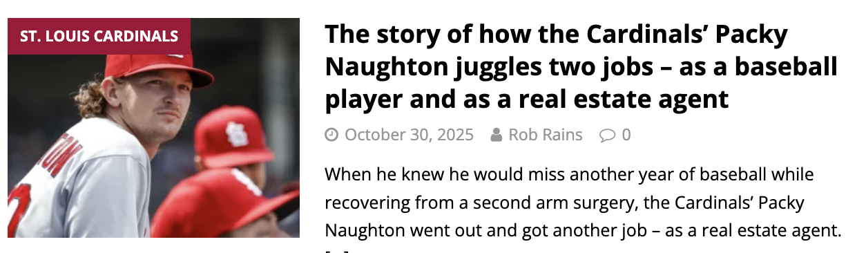 The final story on our list for 2025 also was about a pitcher who has spent more than a year rehabbing from surgery. The difference for Packy Naughton is that while he was doing that, he also went out and got another job, as a real estate agent. To read the story from Oct. 30 CLICK HERE