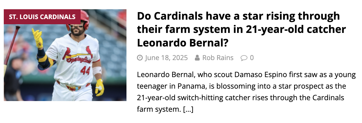 We spent a lot of time each season in the minor leagues, and many of the other 10 stories which join the profiles of Bloom and Wetherholt on our list of the favorite stories in 2025 were a result of some of those trips, including profiles of some of the Cardinals’ other top prospects and some human-interest stories.