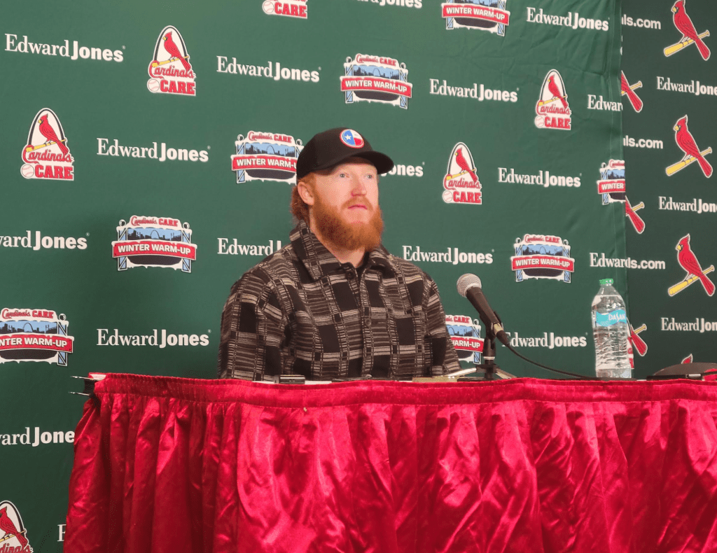 Right-handed pitcher Dustin May, who the Cardinals signed to a one-year contract for 2026 that also includes a mutual option for 2027, was on hand for the Winter Warm-Up and fans got to see him up close and get his autograph.