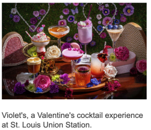 It’s a beautifully decorated and romantic spot for a date night, girlfriends’ getaway or group gathering. Violet’s is the Valentine’s cocktail and dinner pop-up experience at St. Louis Union Station. With a menu of eight specialty cocktails featuring everyone’s favorite spirits, Violet’s has taken over the Train Shed restaurant space for the entire month of February.