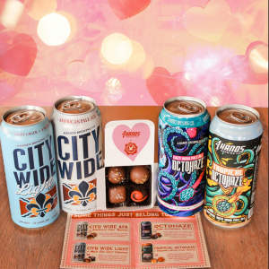 4 Hands Brewery has teamed up with Chocolate! Chocolate! Chocolate! paired with a 4-pack of City Wide, City Wide Light, OctoHaze, and OctoHaze Tropical to enjoy at home. Pairing details come inside the attached Valentine’s Card. The Chocolate & Beer collection is available to purchase at all 4 Hands Brewing Co. locations.