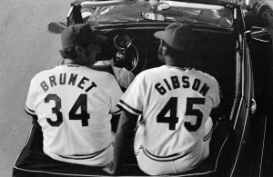 He took the photo of Bob Gibson at a game in the 1970’s. That’s Joe Torre at third base.