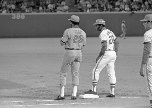 The photo, left, shows Lou Brock, just before getting ready to steal one of the 63 bases he stole during the 1972 season.
