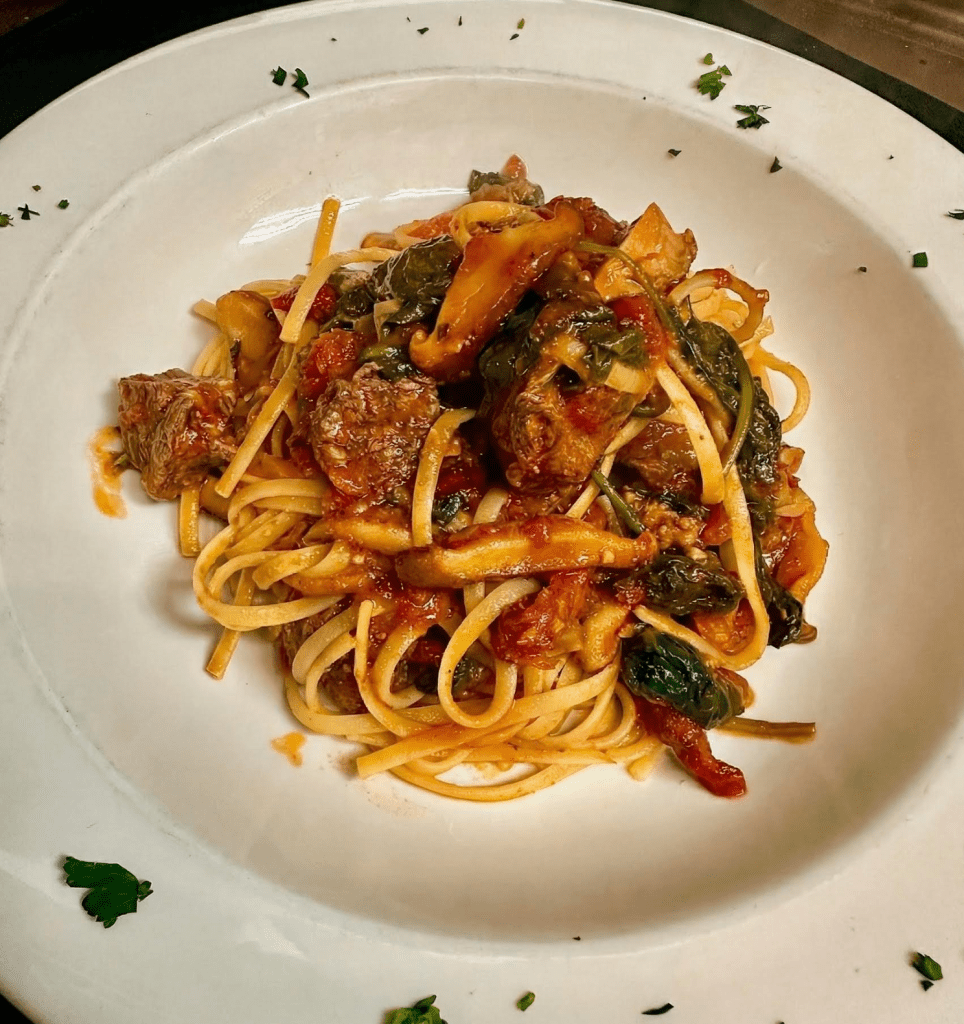 One of Milian’s signature dishes, Veal Milianese is an elegant dish of thinly pounded veal that’s lightly breaded, pan fired, topped with parmesan and served with a lemon wedge. “ A simplistic dish with phenomenal flavor,” says Ceko who also recommends Linguine Alla Amy. A dish that you won’t find anywhere else in the area created with love, inspired by family, and features beef tenderloin tips, shiitake mushrooms, spinach, sun dried tomatoes in a rich tomato sauce over linguine. It’s warm, comforting, and made from the heart — just like everything we serve.”