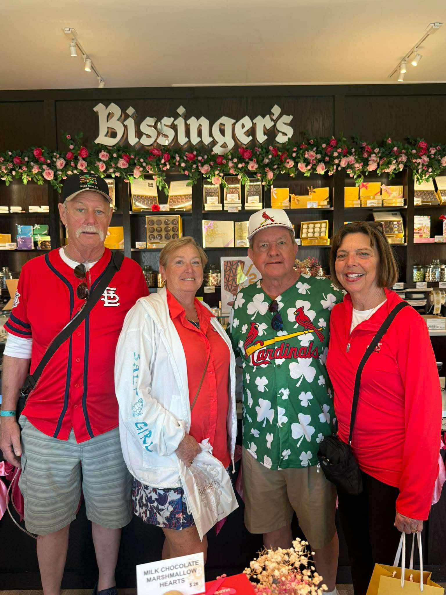 Cardinals fans Bob and Barb Siebens and John and Mary Jo O’Connell of Chesterfield, Missouri had Bissinger’s in Palm Beach as one of their first stop when they got to Spring Training this year.