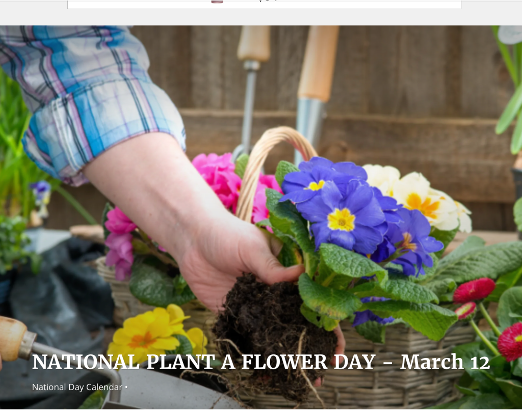 Spring is just around the corner– in fact it’s Friday March 20. In preparation for that date, the people who plan the “National Days” calendar designated March 12th as the day to participate in National Plant a Flower Day