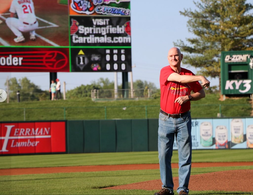 Two of Schroder’s worlds collided when he threw out the first pitch at the Springfield Cardinals game at Hammons Field.