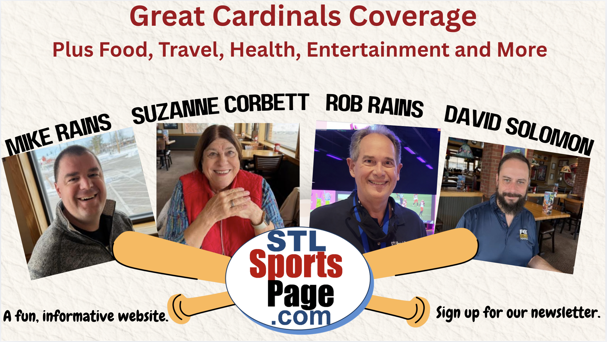 We care about our readers… and along with our professional Cardinals coverage from 45-year BBWAA Beat Writer, Rob Rains, and our “Rains on the Cardinals” Podcast featuring Rains and Mike Rains– we offer free events, contests to win Cardinals tickets and other great prizes, and additional articles about food, travel, entertainment and what to do around St. Louis.