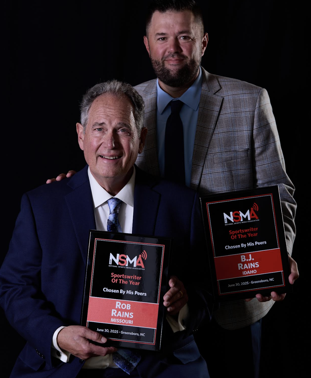 Rob Rains won the Missouri Sportswriter of the Year, June 2, 2025. One of the highlights of the dinner was that his son, B.J. Rains, won the state writer of the year award for Idaho, where he runs the Bronco Nation News website covering Boise State athletics. CLICK HERE