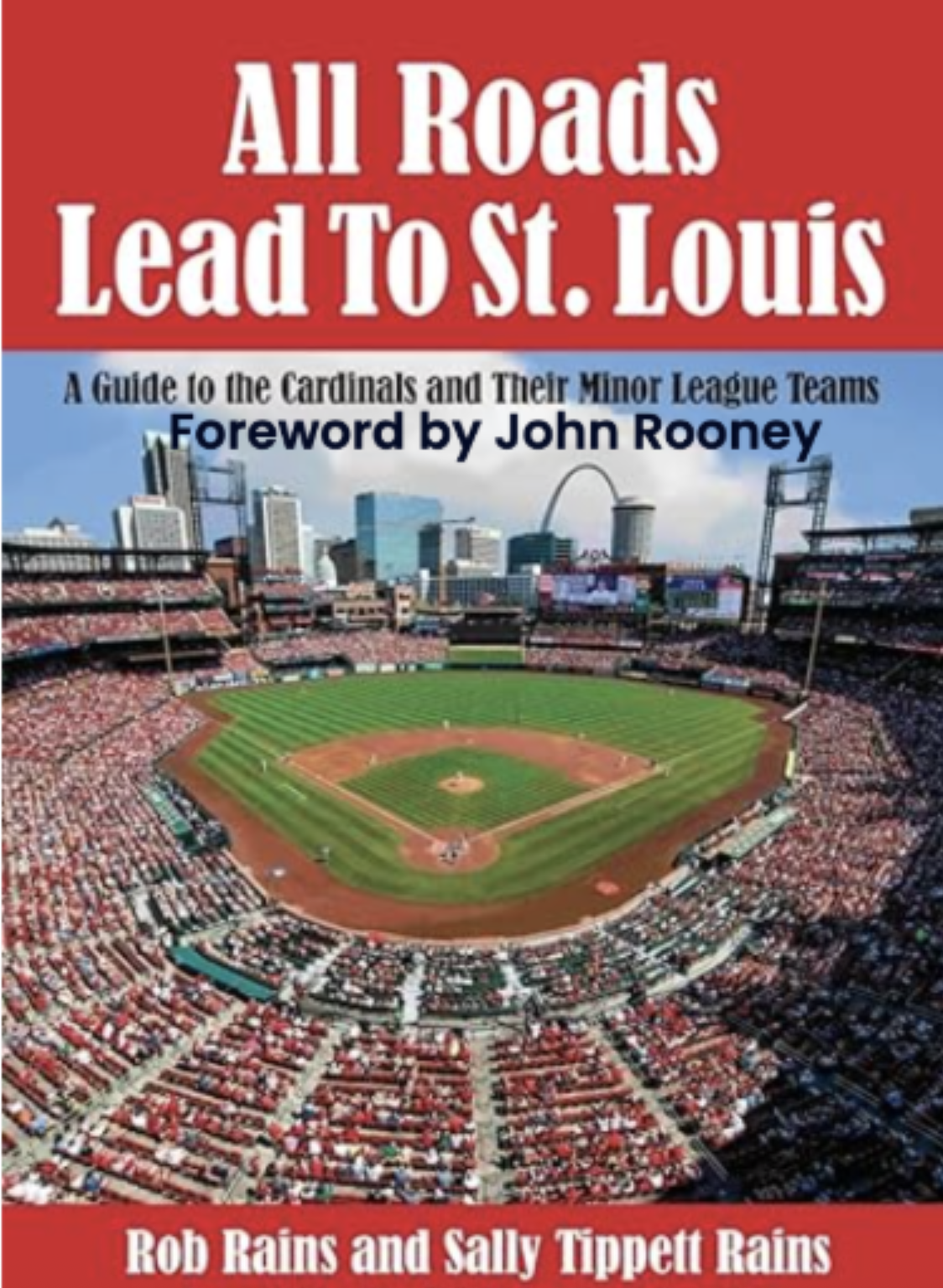 “In 2018 Sally and Rob Rains traveled to see all of the Cardinals U.S. – based affiliates plus spring training and the Arizona Fall League to put together this guidebook to help fans plan their own baseball trips. Whether it’s spring training; traveling to minor league town or watching the Cardinals at Busch Stadium or on the road; wherever there is baseball, memories will be made. All Roads Lead to St. Louis; A Guide to the Cardinals and Their Minor League Teams includes information about the teams, the histories of their ballparks, recommendations of restaurants, hotels and other tourist attractions in the areas-plus Adam Wainwright adds a few of his personal recommendations. The Cardinals have long relied on their player development system as their primary pipeline for players. For Cardinal fans, making road trips to see those players when they are in the minors is a fun and worthwhile experience.”