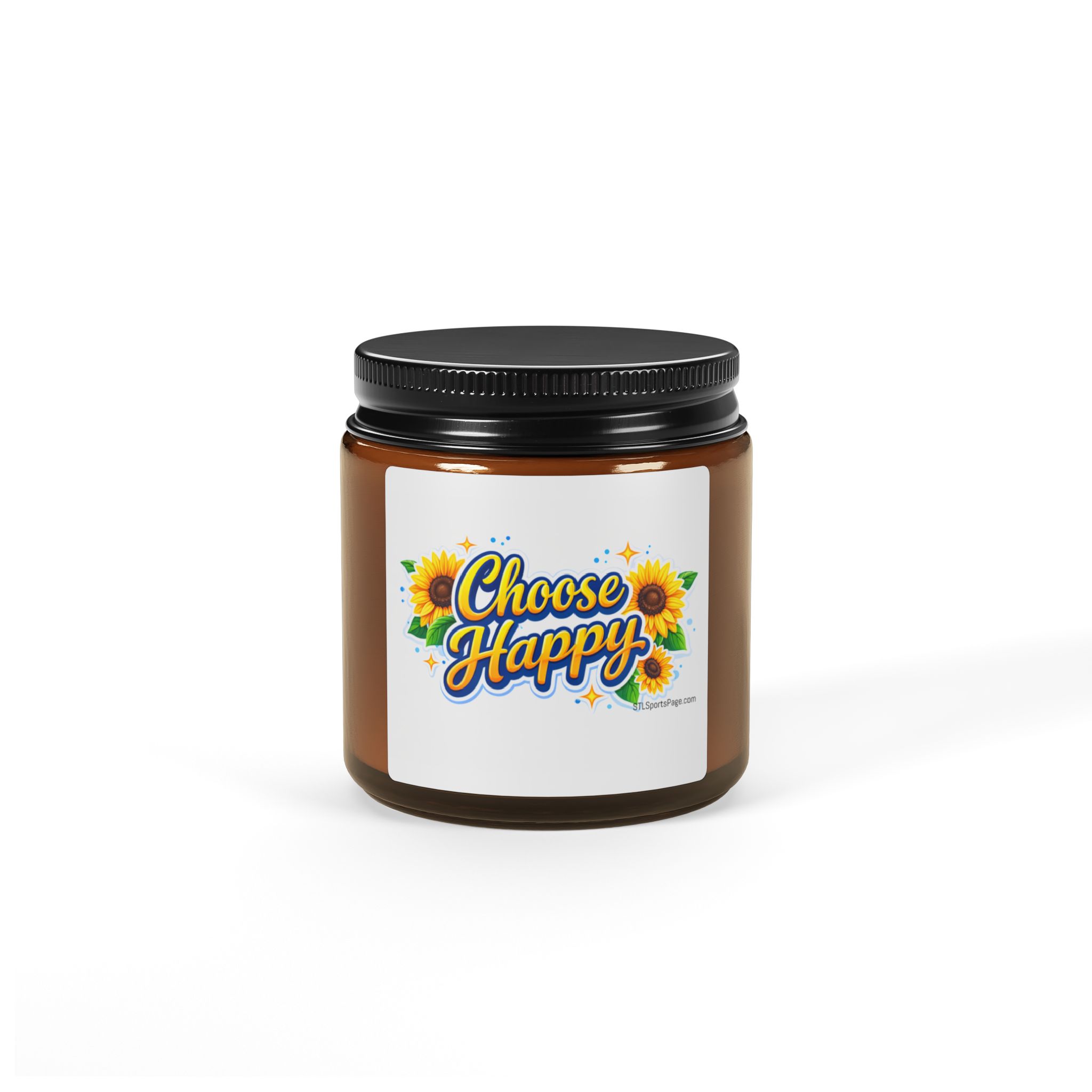 Choose Happy Soy Candle — Amber Jar Scented Candle with Sunflower Design