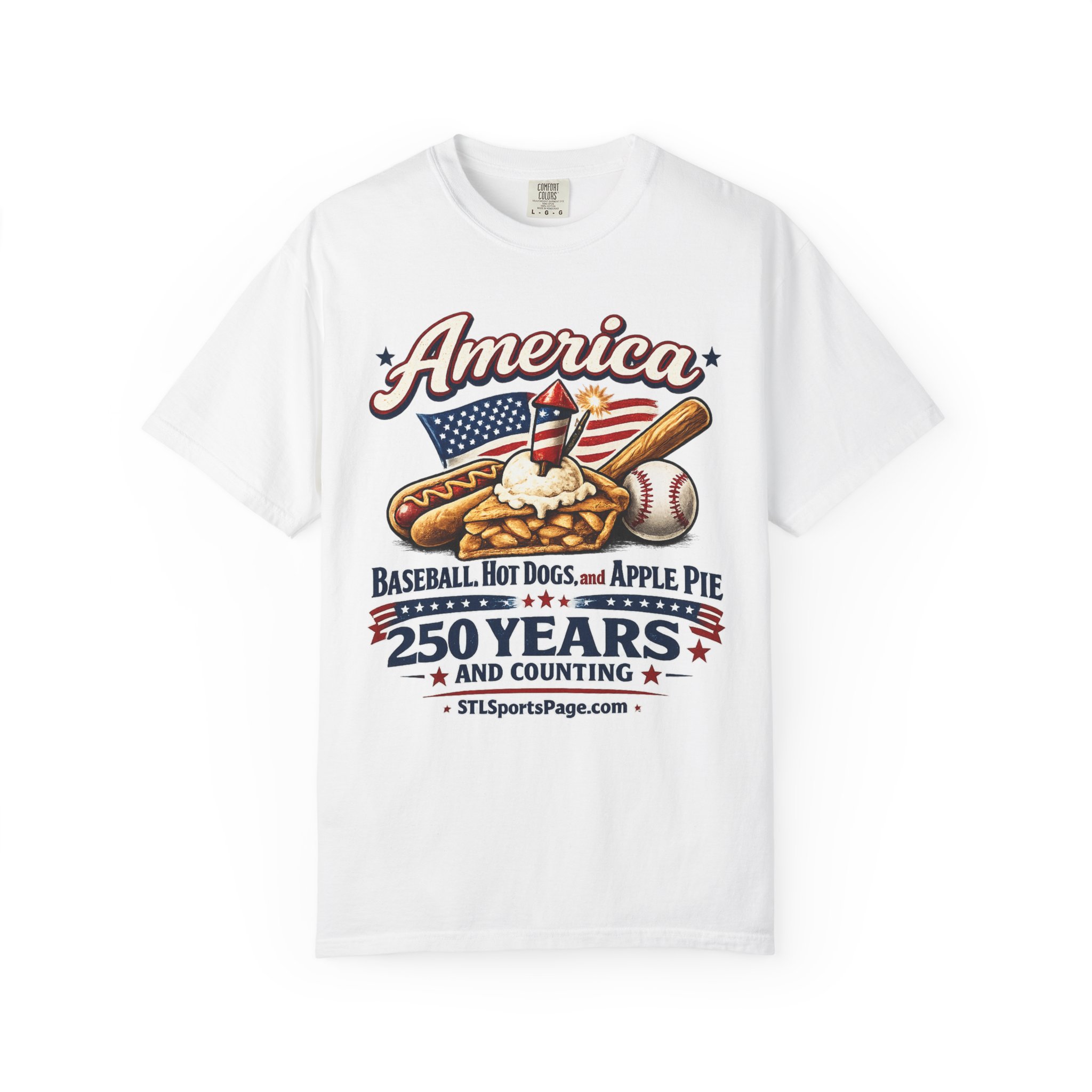 Patriotic America 250 Years Baseball, Hot Dogs & Apple Pie Tee