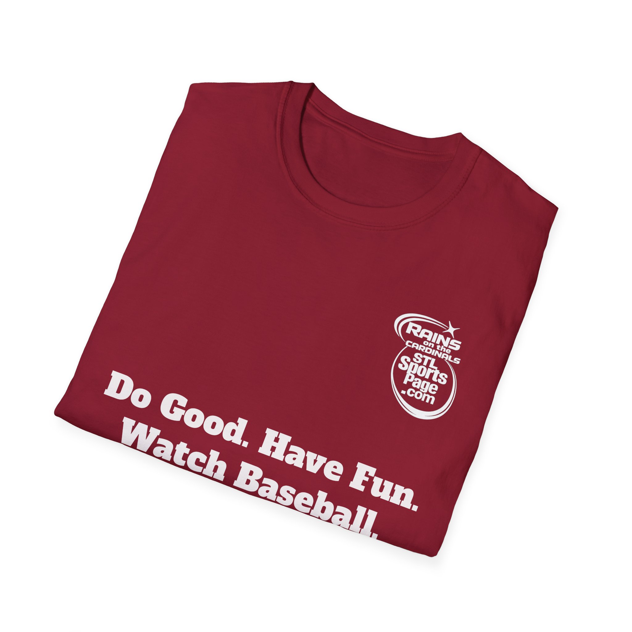 T-Shirt — Soft, unisex. “Do Good. Have Fun. Watch Baseball.”